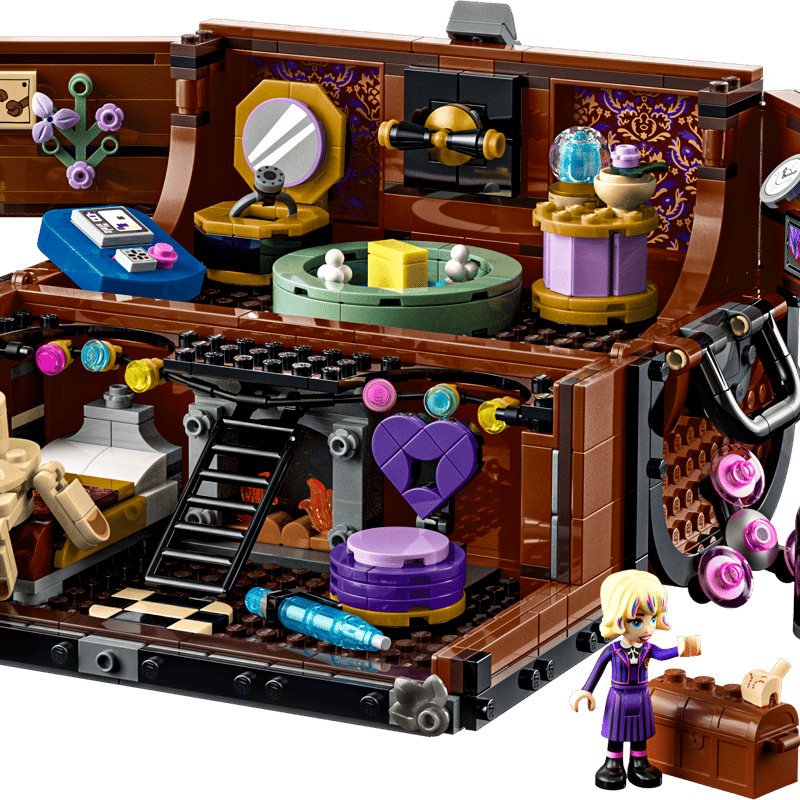 • Ігровий набір LEGO® про Венздей — набір містить іграшкову «домівку» у скрині з чіткими житловими зонами, кумедними деталями й безліччю аксесуарів (як очікуваних, так і несподіваних!) і стане унікальним елементом декору кімнати