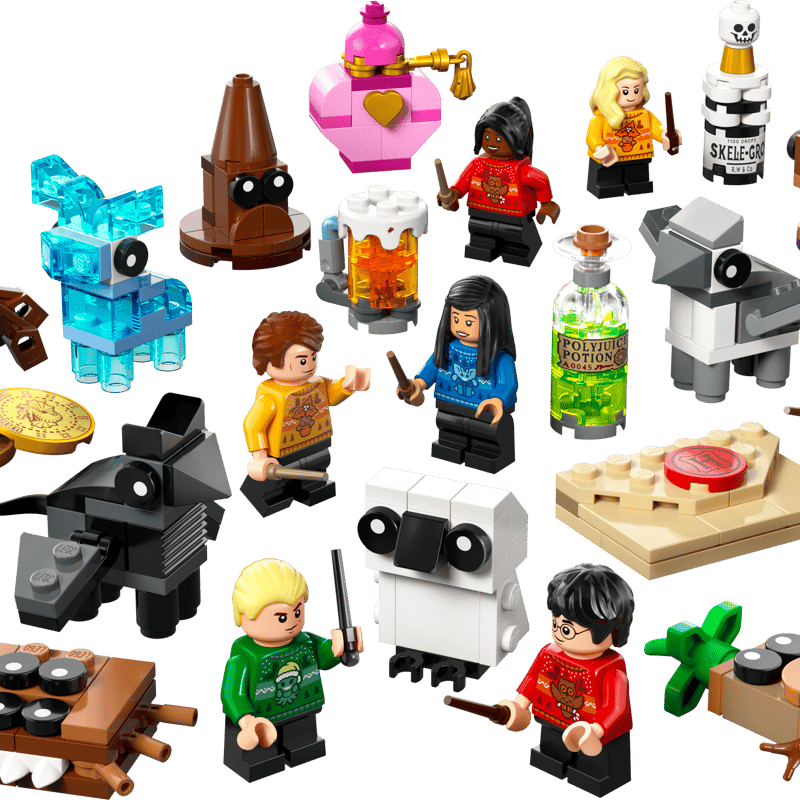 - У цьому різдвяному календарі знайдуться 6 складаних фігурок LEGO®: Гедвіґа, Бакбик із рухомими крилами, Араґоґ з рухомими кінцівками, Тестрал з рухомими крилами, корінь мандрагори й Патронус у вигляді Оленя