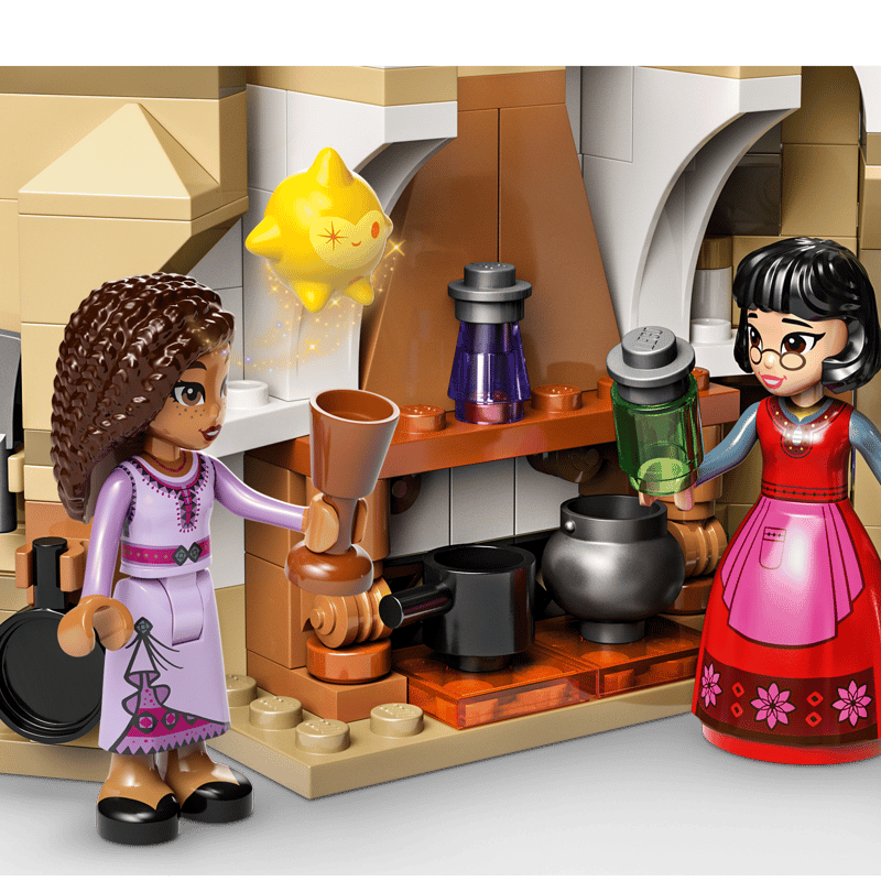 - Чотири веселі персонажі — мініляльки LEGO® ǀ Disney Аша, Жоржина та король Маґніфіко, а також фігурка Зірки LEGO ǀ Disney з нового діснеївського фільму «Бажання» надихнуть на сюжетні пригоди.