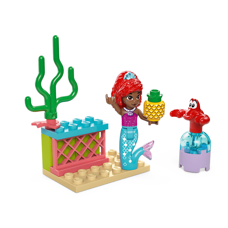 Співайте з Аріель і Себастіаном на музичній сцені Аріель! Створіть сцену й облаштуйте зону для відпочинку після вистави. Допоможіть Аріель розігрітися на гітарі, поки Себастіан грає на маракасах. Час починати концерт! Покрутіть Аріель на сцені у веселому танці, коли вони з Себастьяном виступають. Після концерту вирушайте за лаштунки, щоб відпочити й насолодитися ананасом. Яка чудова вистава!